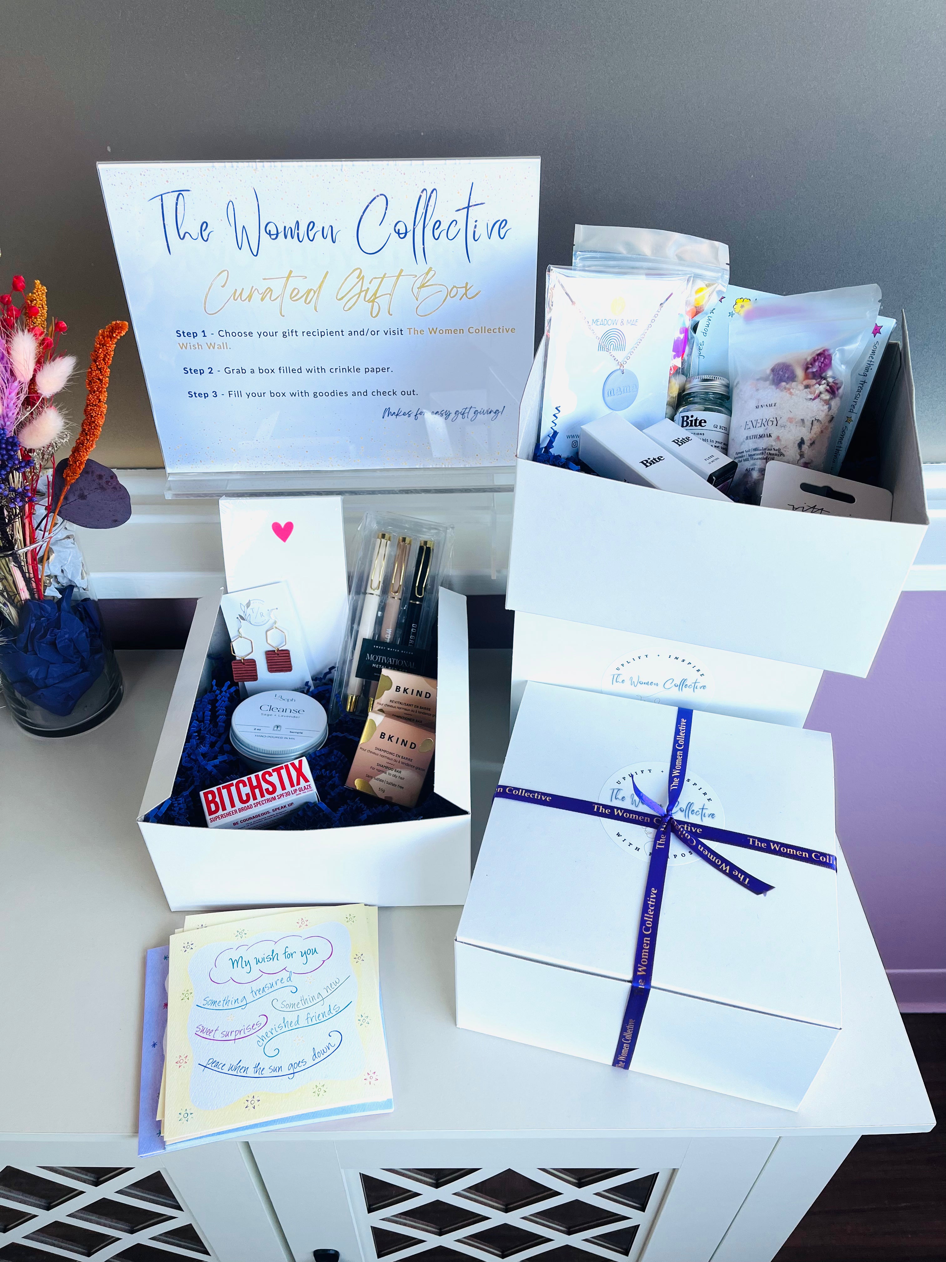 Curated Gift BoxesNeed a gift for someone special in your life? Select your recipient and/or visit The Women Collective Wish Wall, grab a box, fill with goodies and check out! Or leave it to us. Special pre-filled boxes are available at a variety of different price points.