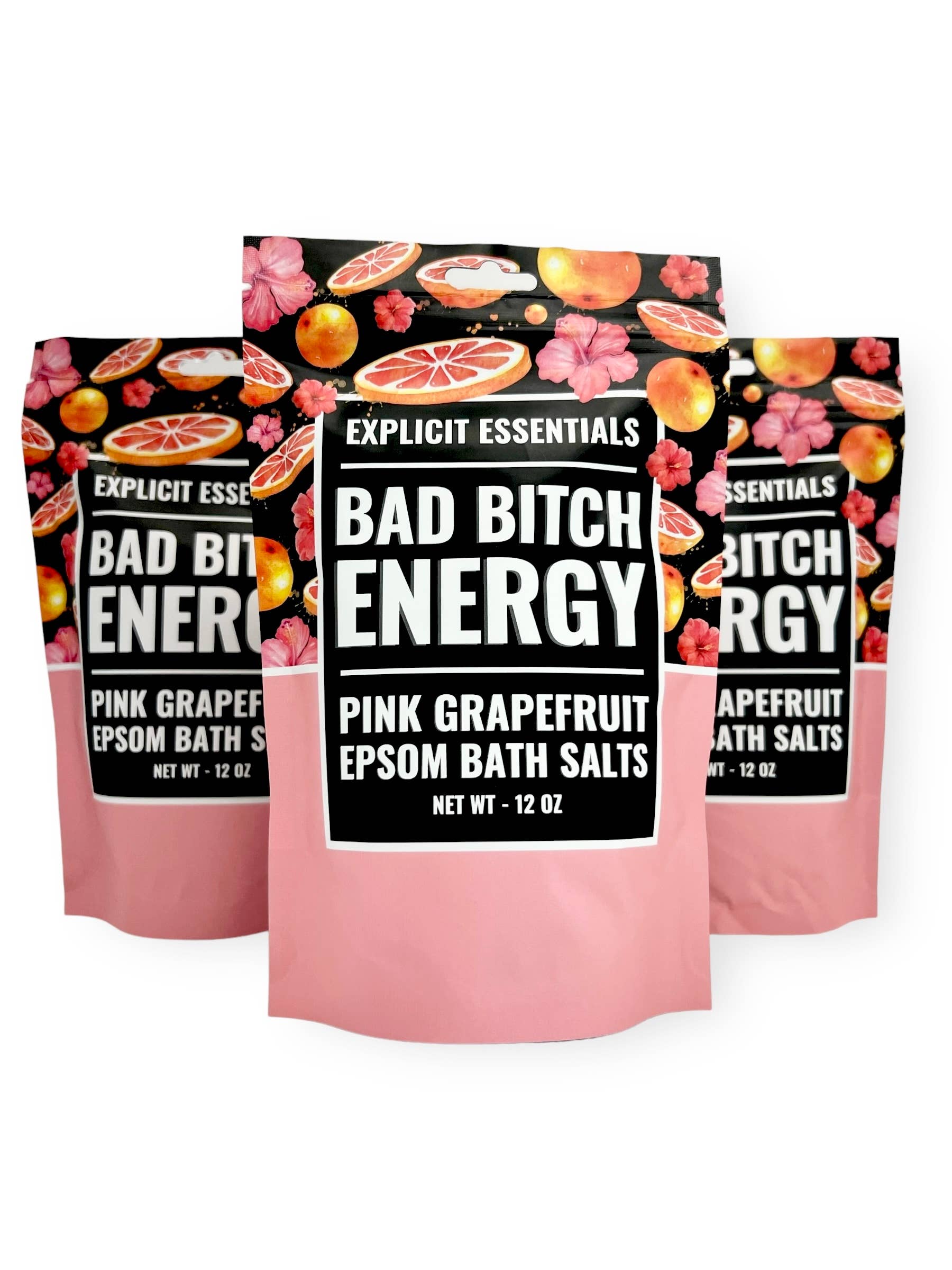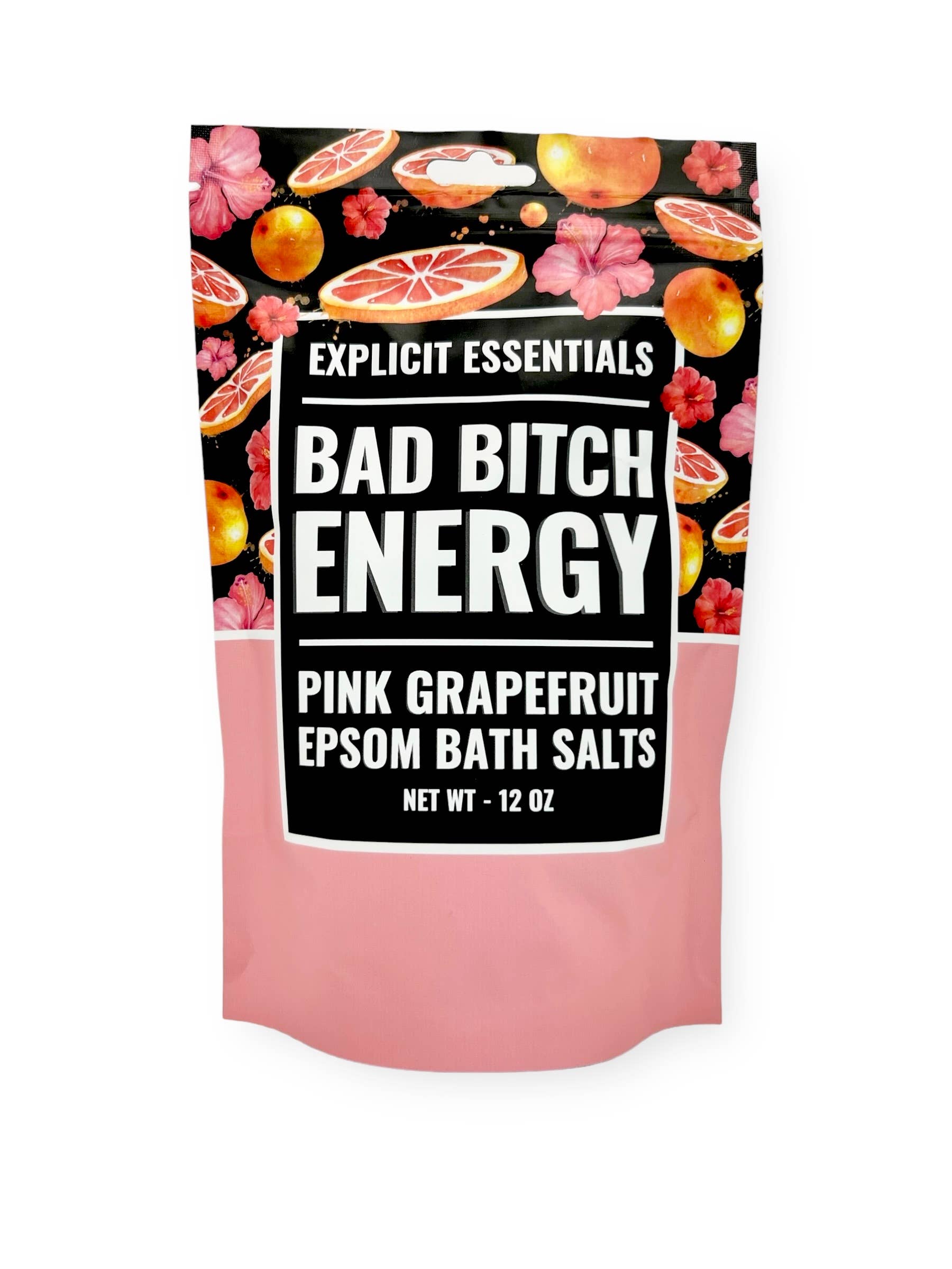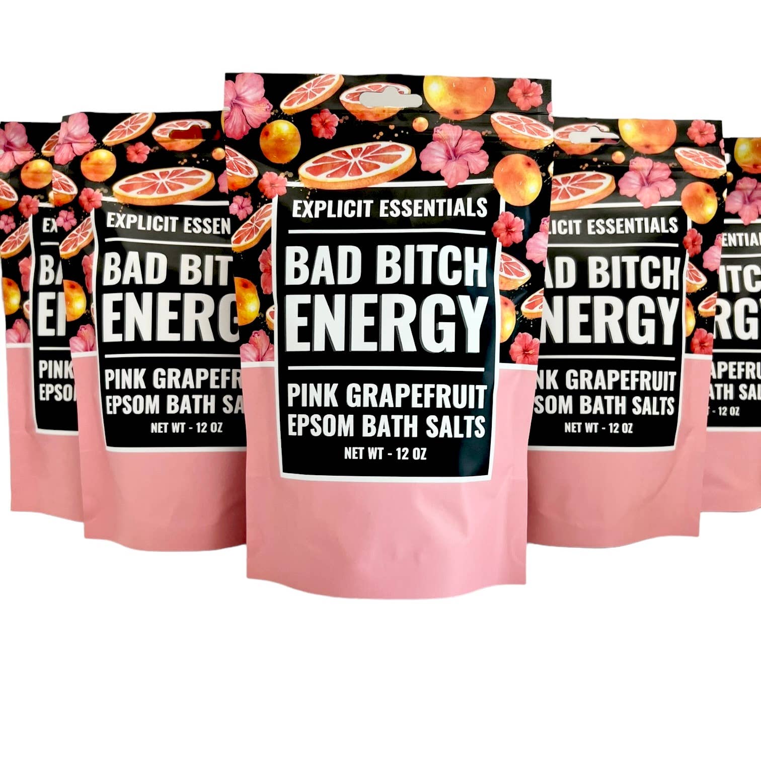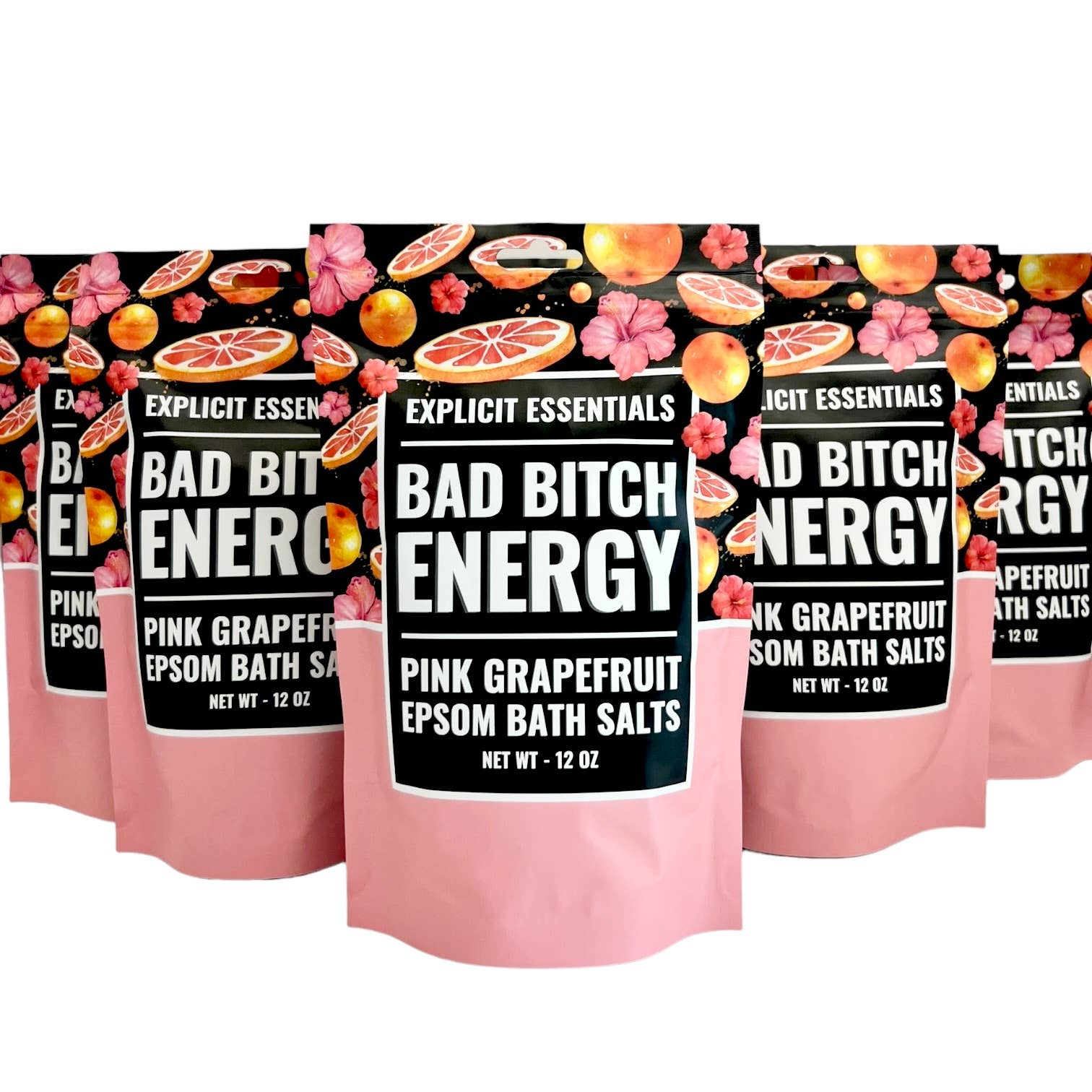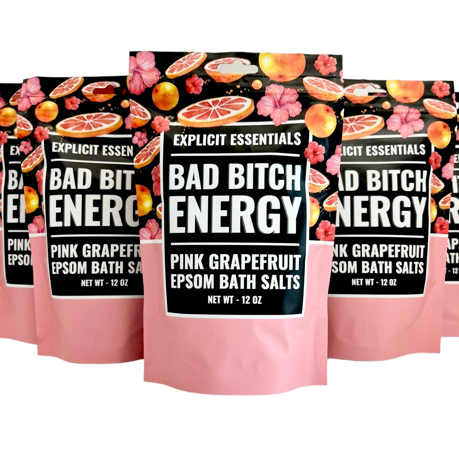 Bad Bitch Energy Pink Grapefruit Bath Salts. Looking for a thoughtful gift that will help them decompress after a long day and bring a laugh? Our Bad Bitch Energy Grapefruit Bath Salts can deliver both. Ships Fast and Free. 12oz bag. • Cruelty Free • Women Owned and Operated • Premium Ingredients