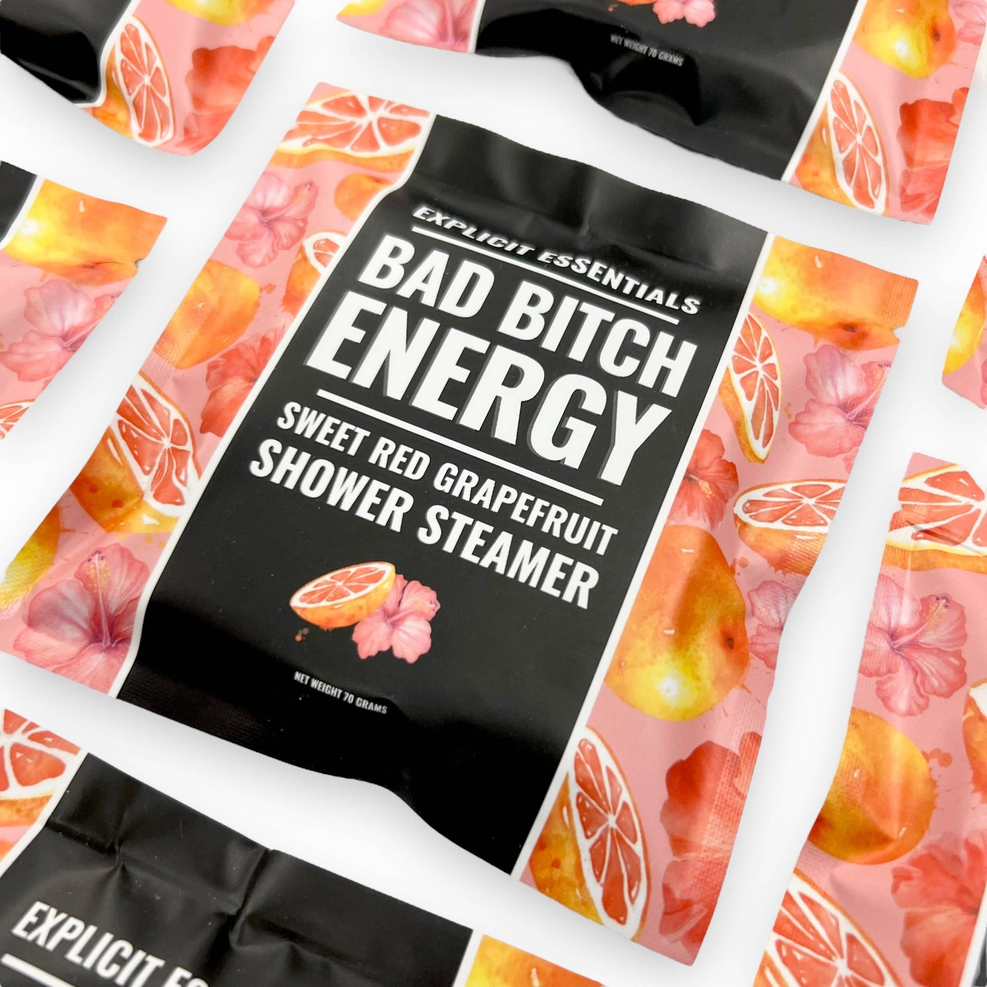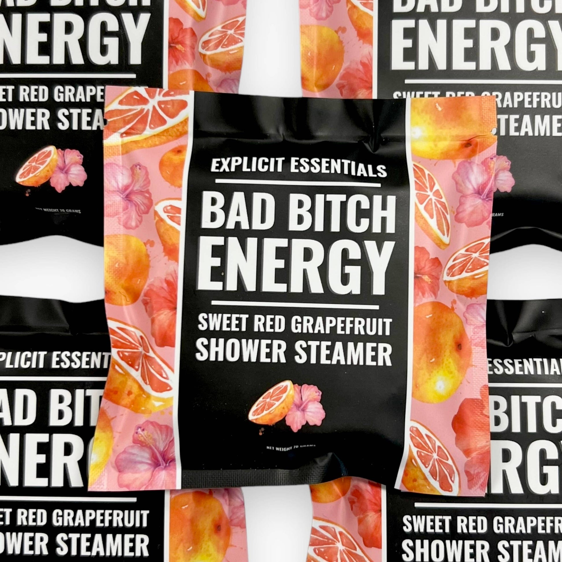 Please note, these are single use and not the same as our steamer four packs. Meet your perfect shower companion for ultimate relaxation and unwinding. Our Bad Bitch Energy shower steamers, infused with our signature pink grapefruit scent, are handcrafted with care in small batches, ensuring quality and cruelty-free indulgence. Whether it's a tough day or you just need a pick-me-up, these steamers are here to motivate and inspire. Treat yourself or a friend to a dose of empowerment with these invigorating shower steamers from Explicit Essentials. •Cruelty Free •Women Owned and Operated •Premium Ingredients