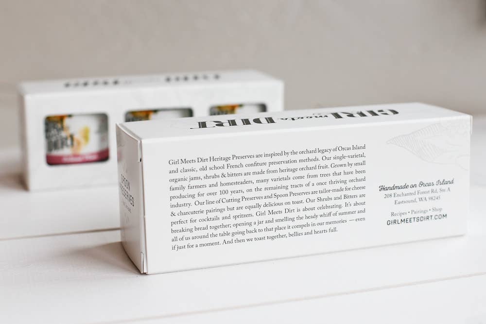 Who doesn't love a mini? We're swooning for these cuties... all boxed up and ready for gifting. We present the very best of our Signature Spoon Preserves in 3 oz jars – so you can greedily sample all of our jams without a hint of guilt. They're a perfect introduction to our lineup for the uninitiated... and carry-on friendly! Also perfect for putting out a few whole jars on a cheese board or charcuterie board.