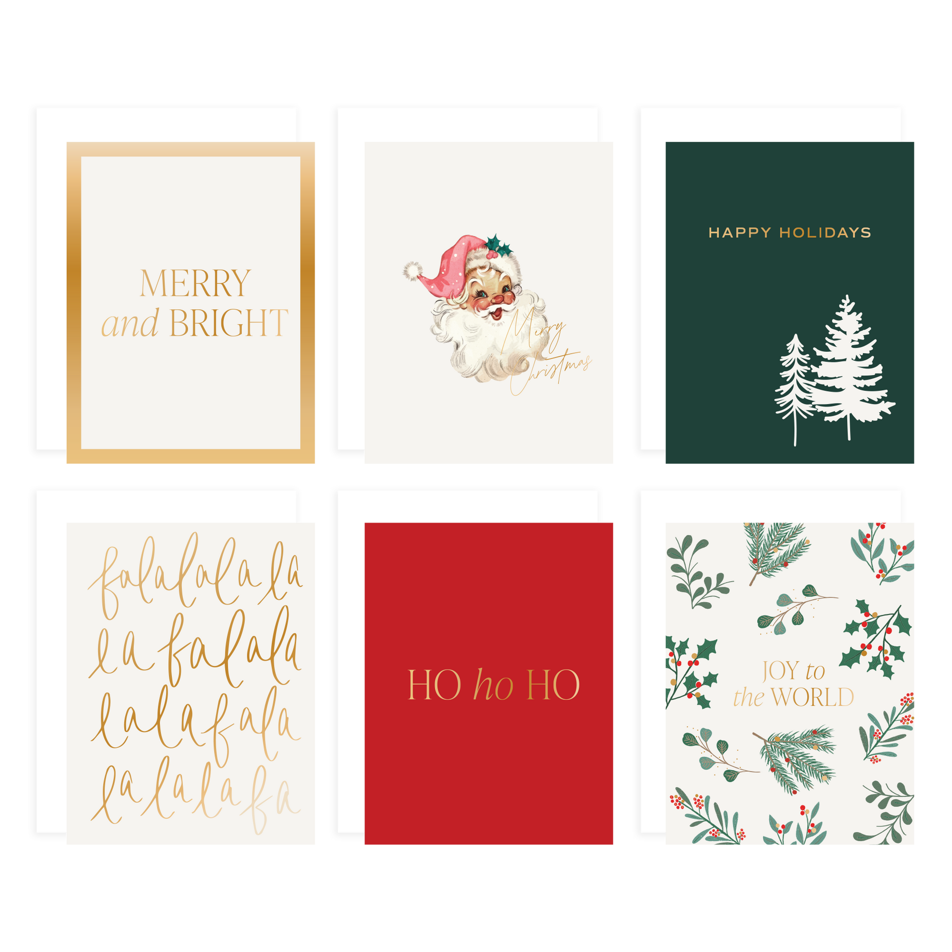 • Design: Gold Foil, Red, Green, Vintage Santa, Holiday Greenery, FaLaLaLaLa
