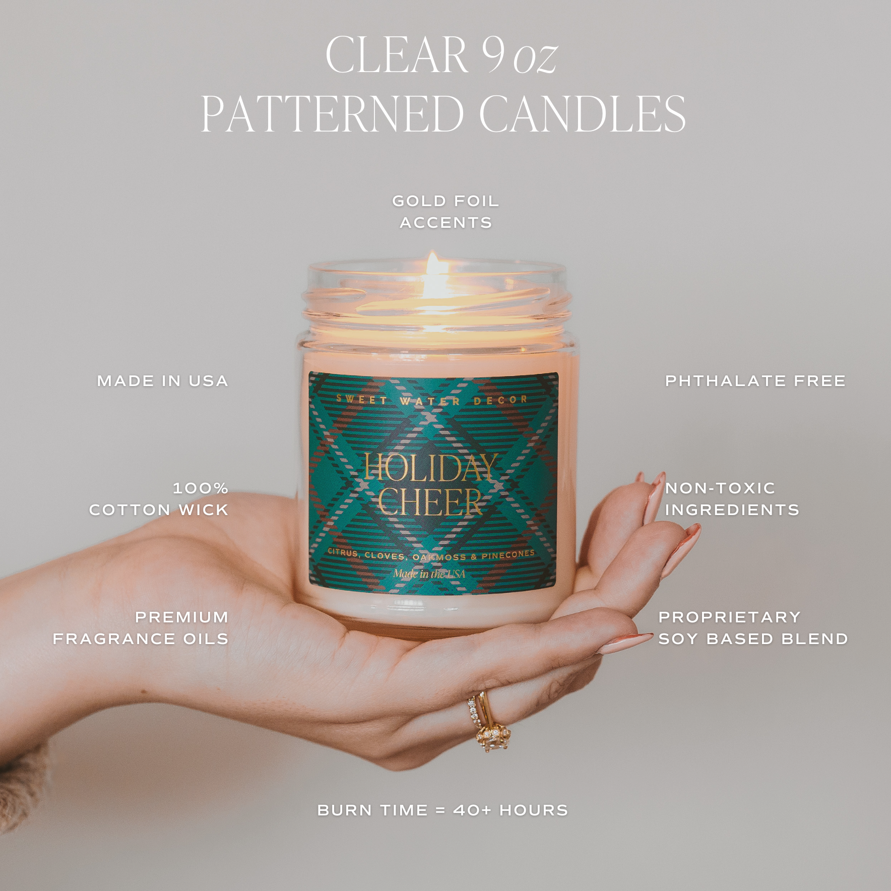 • Wax: Proprietary Soy Based Wax Blend | Vegan, Non-GMO, Kosher