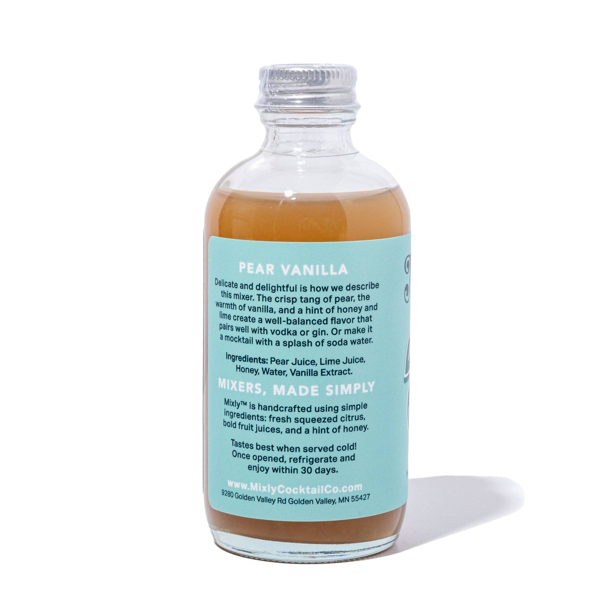 Introducing our Mixly Pear Vanilla Cocktail Mixer in a convenient 4oz size—just right for gift baskets, stocking stuffers, or party favors!