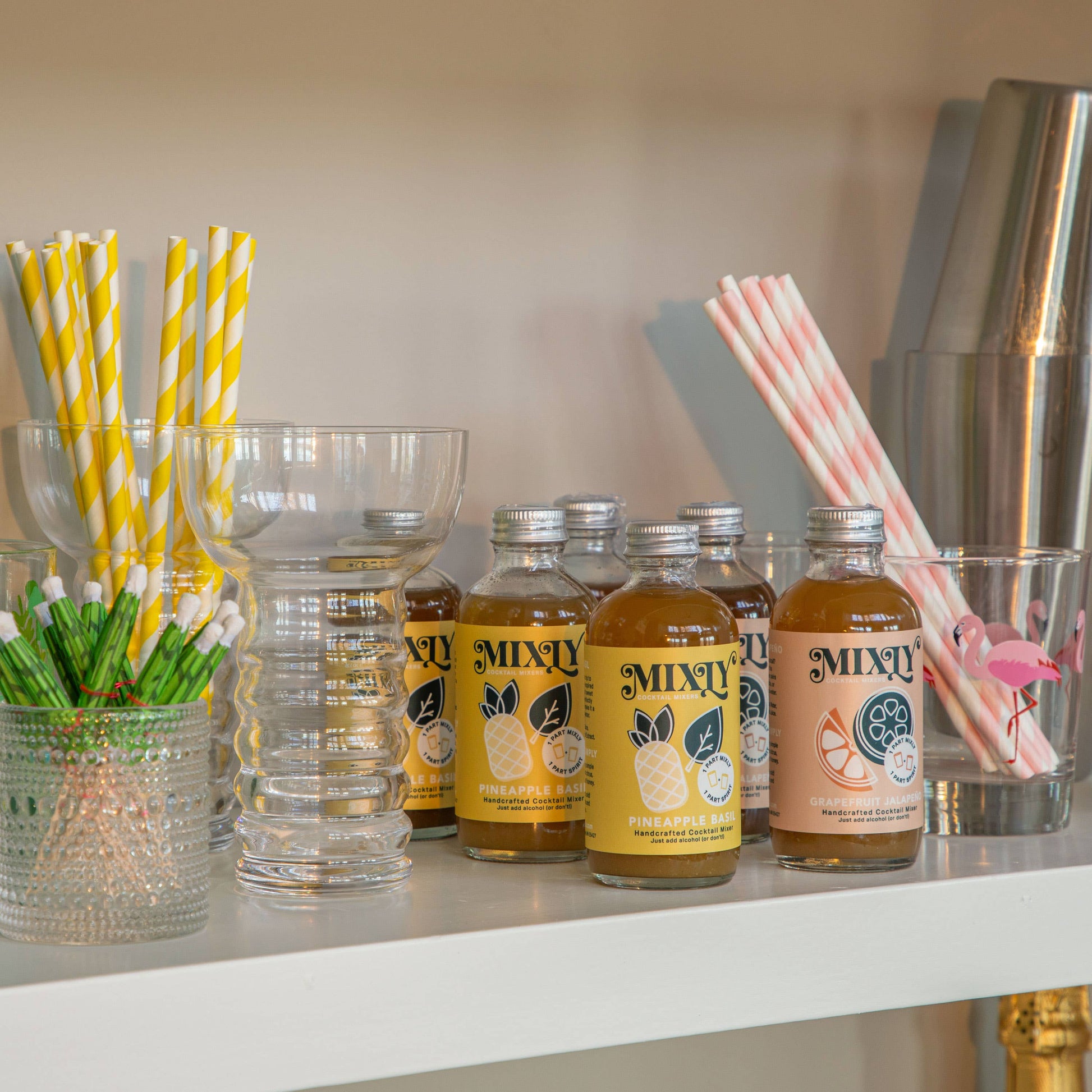 Meet our Mixly Pineapple Basil Cocktail Mixer, now in a 4oz mini size—ideal for gift baskets, stocking stuffers, or party favors!