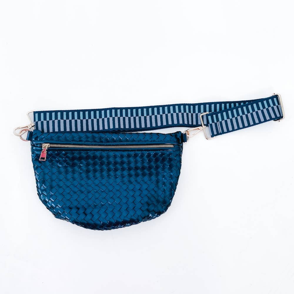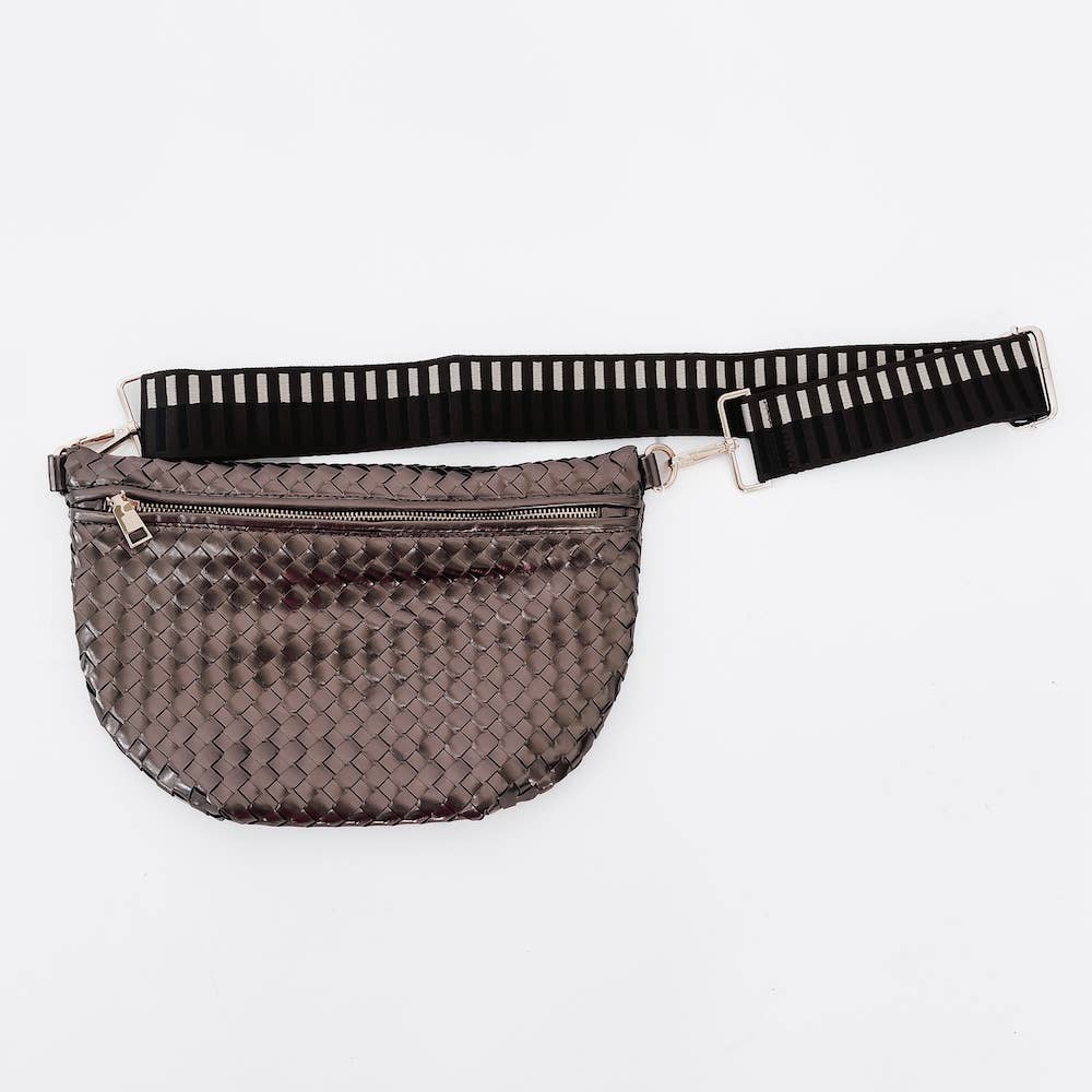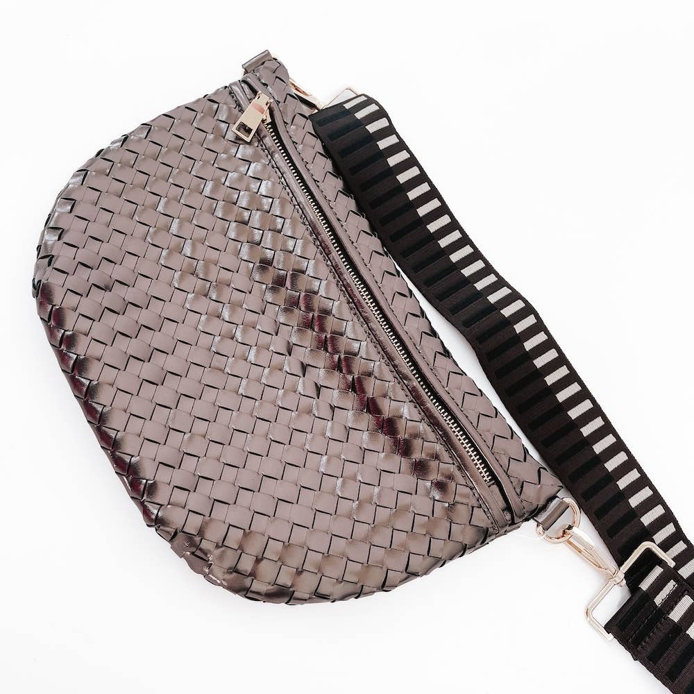 Meet the Westlyn Woven Bum Bag! Gorgeous woven vegan leather in brown, black, cream, gray, denim blue, fuchsia, and emerald with a unique block design on the strap gives us edgy, rocker vibes. We also have it available in checkered black and checkered brown! Beautiful hardware with a zipper closure with beige and black chevron interior, and a zippered slash pocket on the inside. This crossbody bag is the perfect accessory to elevate any outfit!