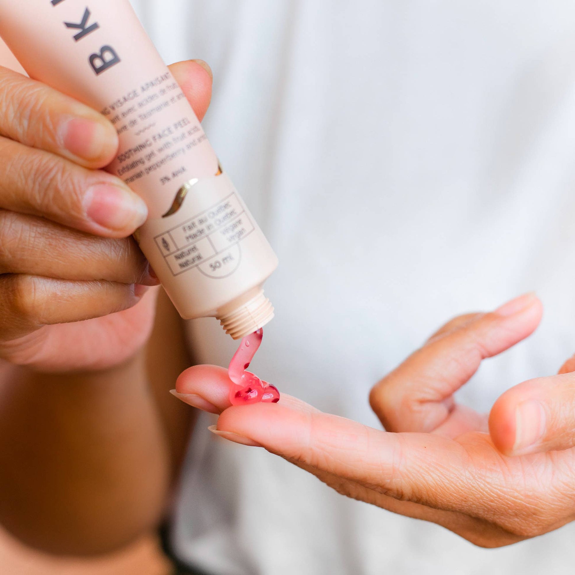Our soothing face peel is designed and made in Quebec. We only use the finest natural ingredients that provide the most benefits for your skin and our products are always cruelty-free!