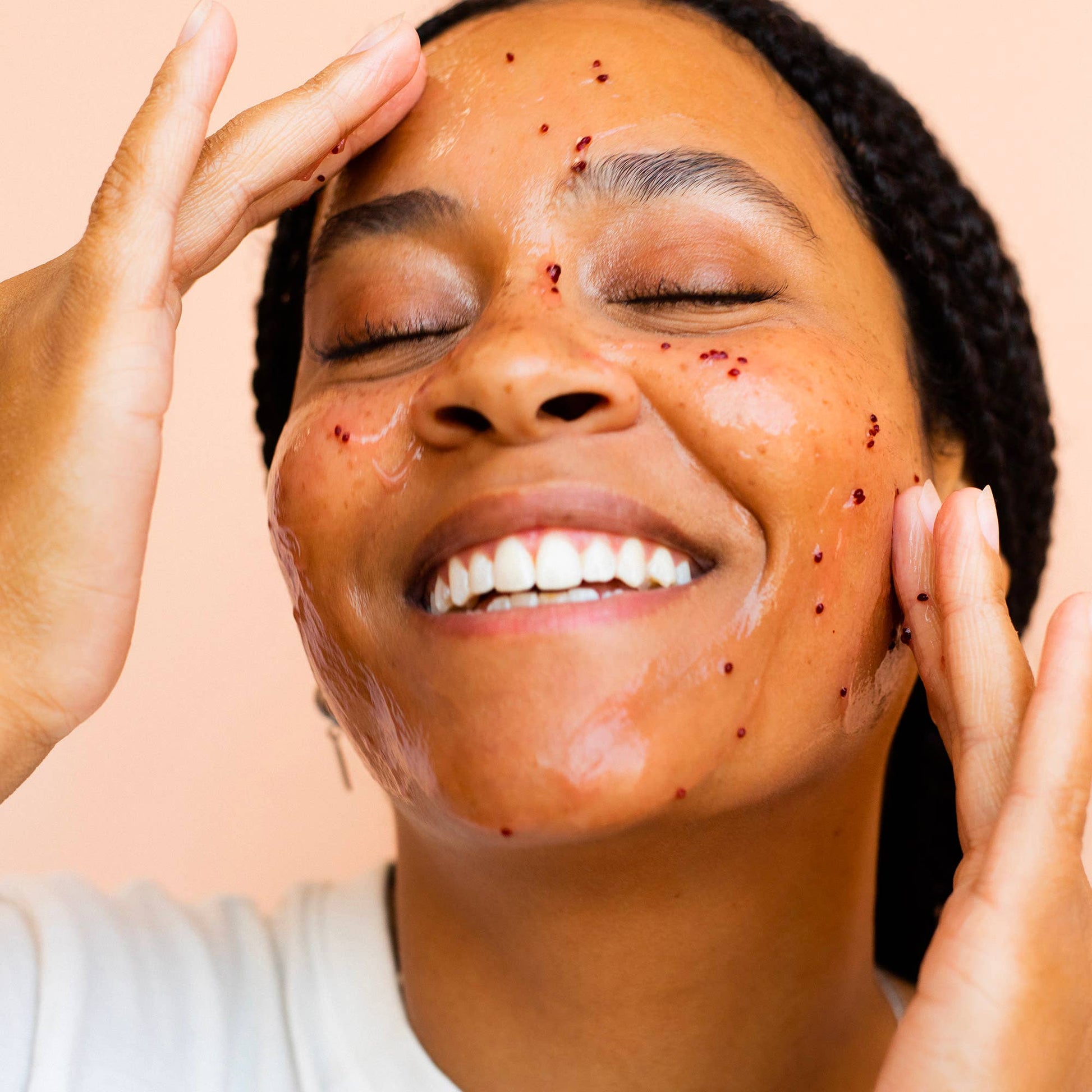 Formulated with fruit acids, a natural source of AHAs (alpha hydroxy acids, water-soluble acids).