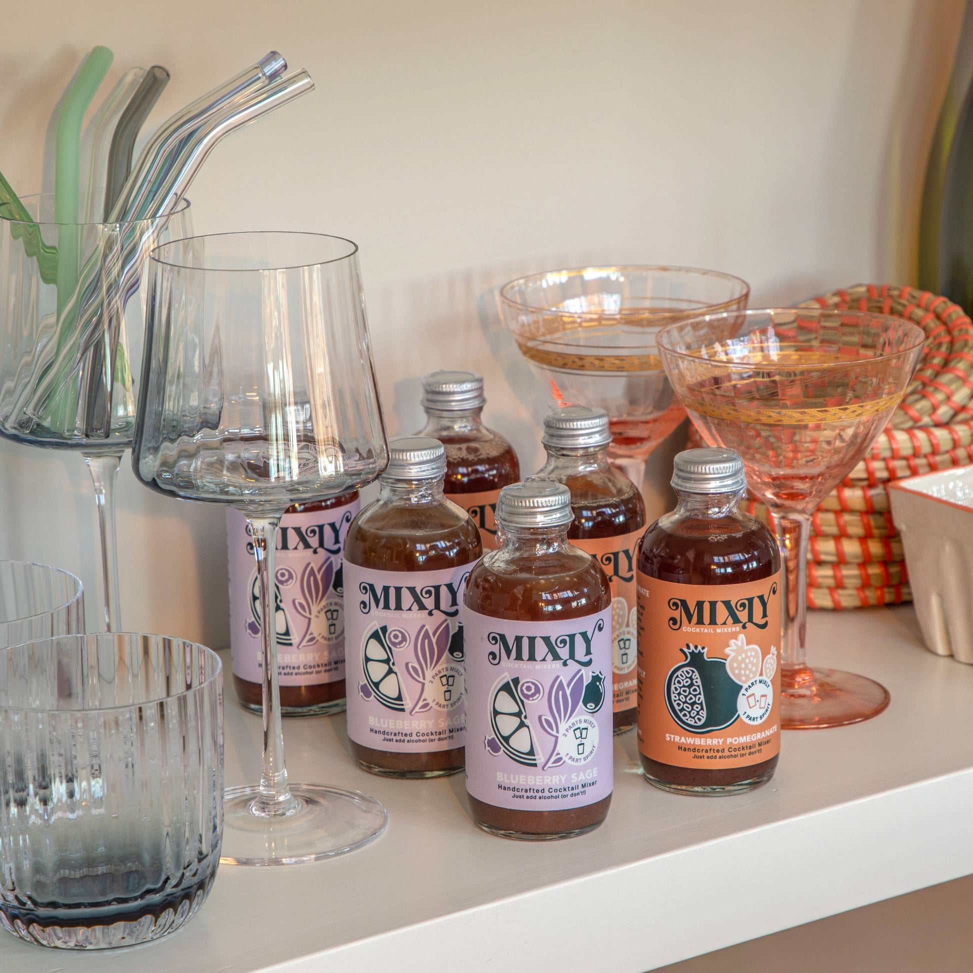 Introducing our Mixly Strawberry Pomegranate Cocktail Mixer in a 4oz mini size—perfect for gift baskets, stocking stuffers, and party favors!