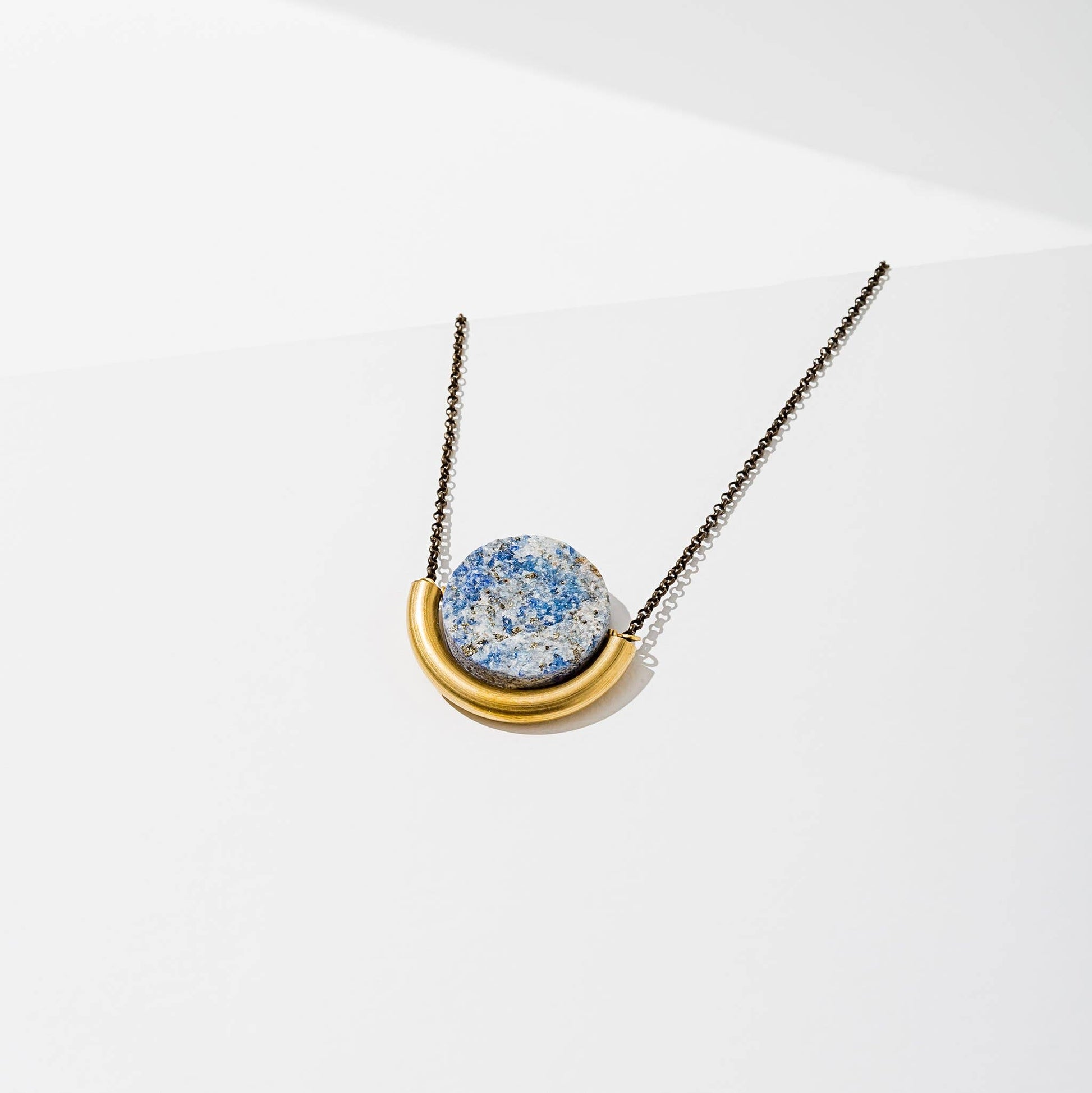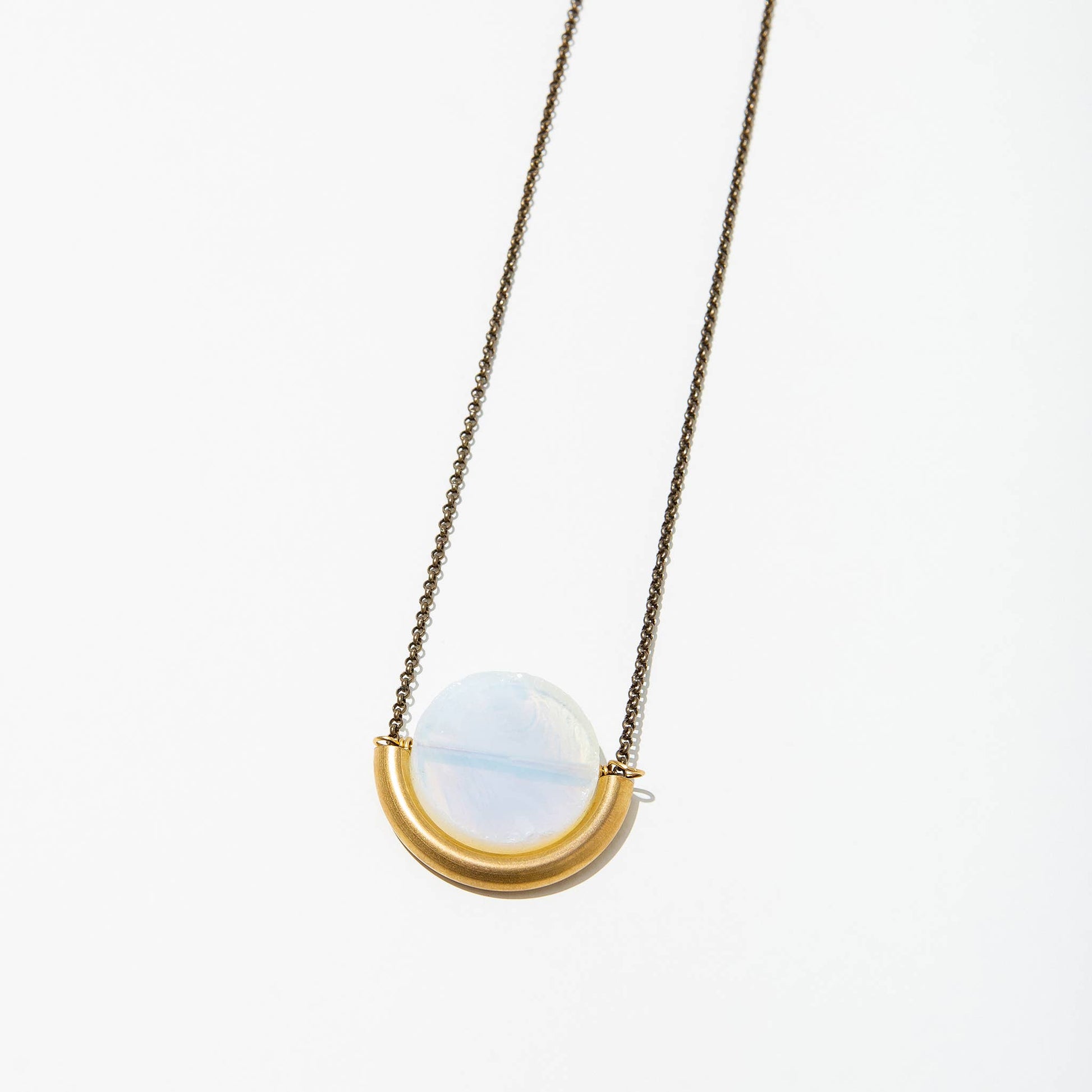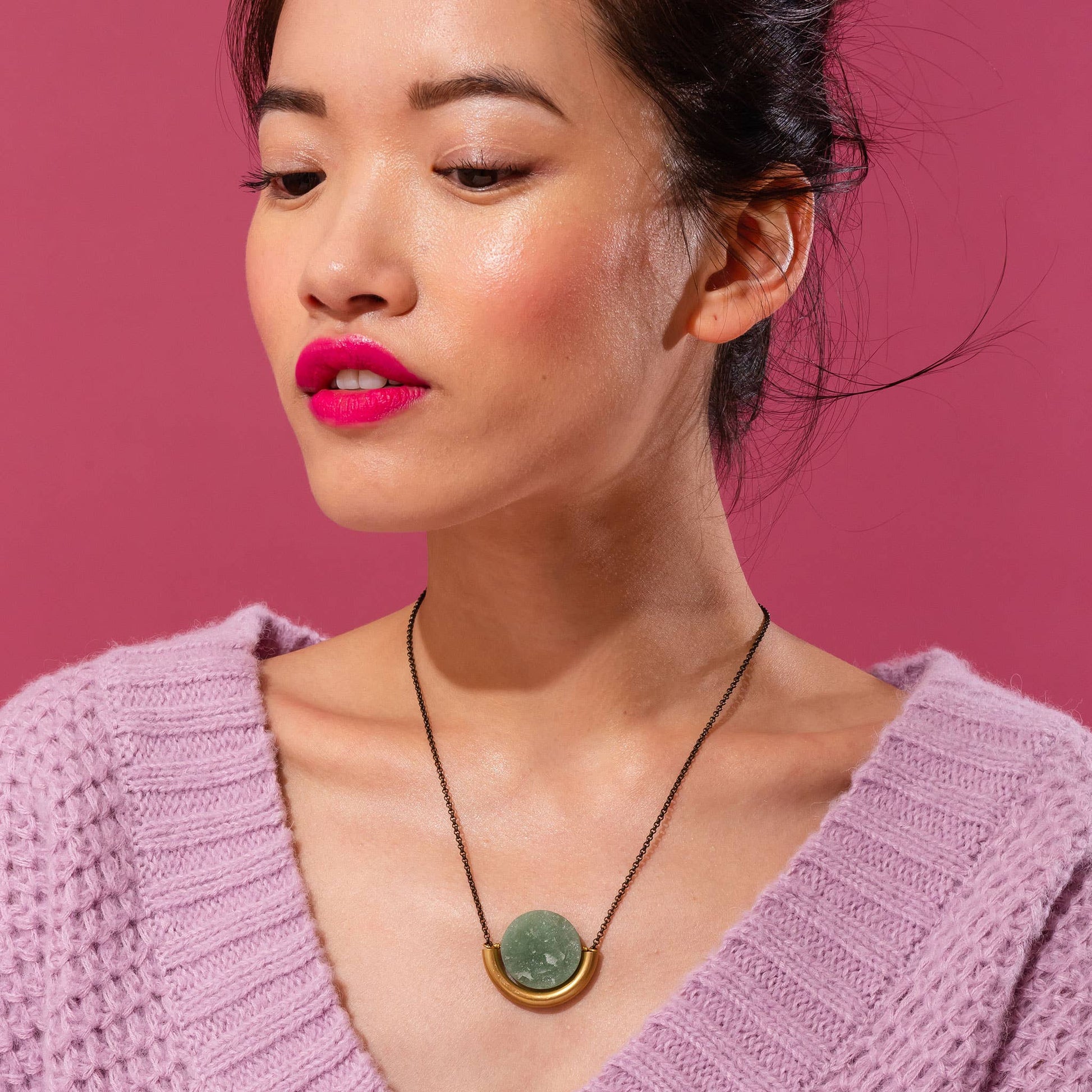 The sun and moon are celestial besties - especially in our Sun and Moon Necklace! This sweet pendant necklace features a rough-cut gemstone of your choosing paired with a brass tube. It all hangs from a 18" long antique brass chain with clasp.